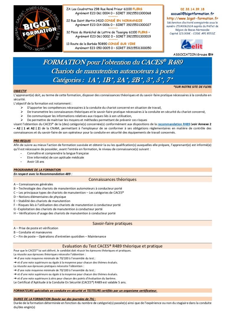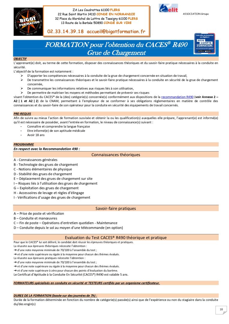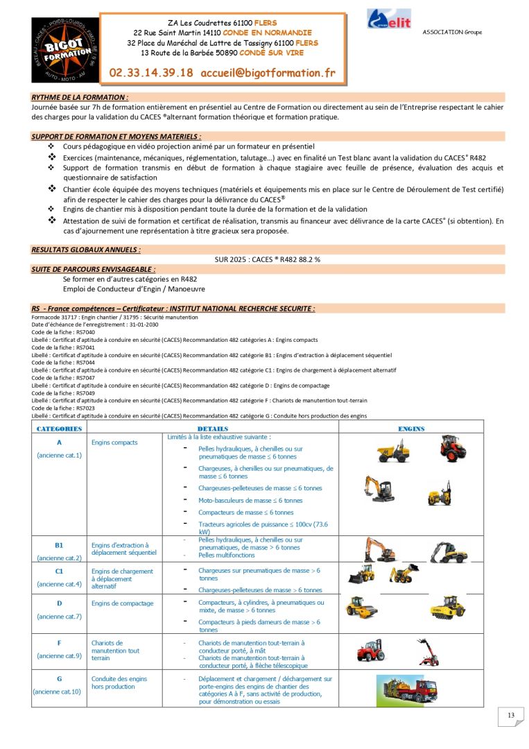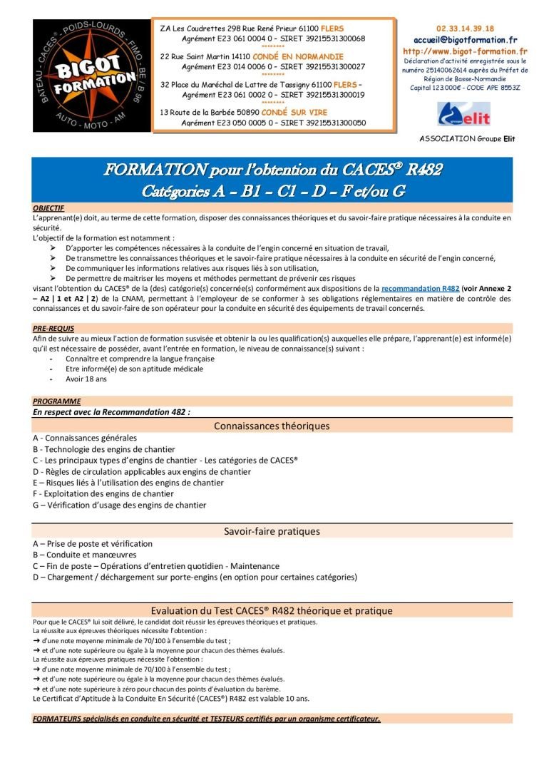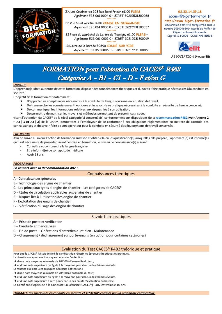 D'après le souhait du client, les formations et tests CACES® peuvent être réalisées soit au Centre de Déroulement de Tests BIGOT FORMATION soit dans l'entreprise d'accueil en fonction du cahier des charges spécifique à la validation du CACES® - une convention de mise à disposition des locaux et/ou du matériel pour tests hors agence est transmise avant la demande du devis.