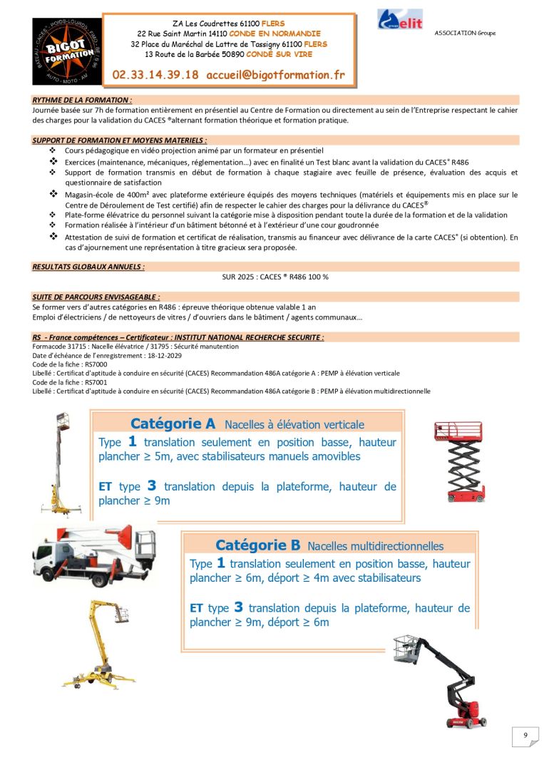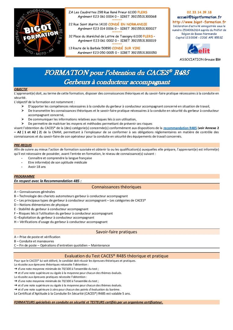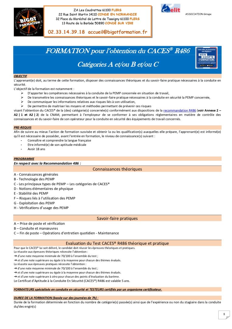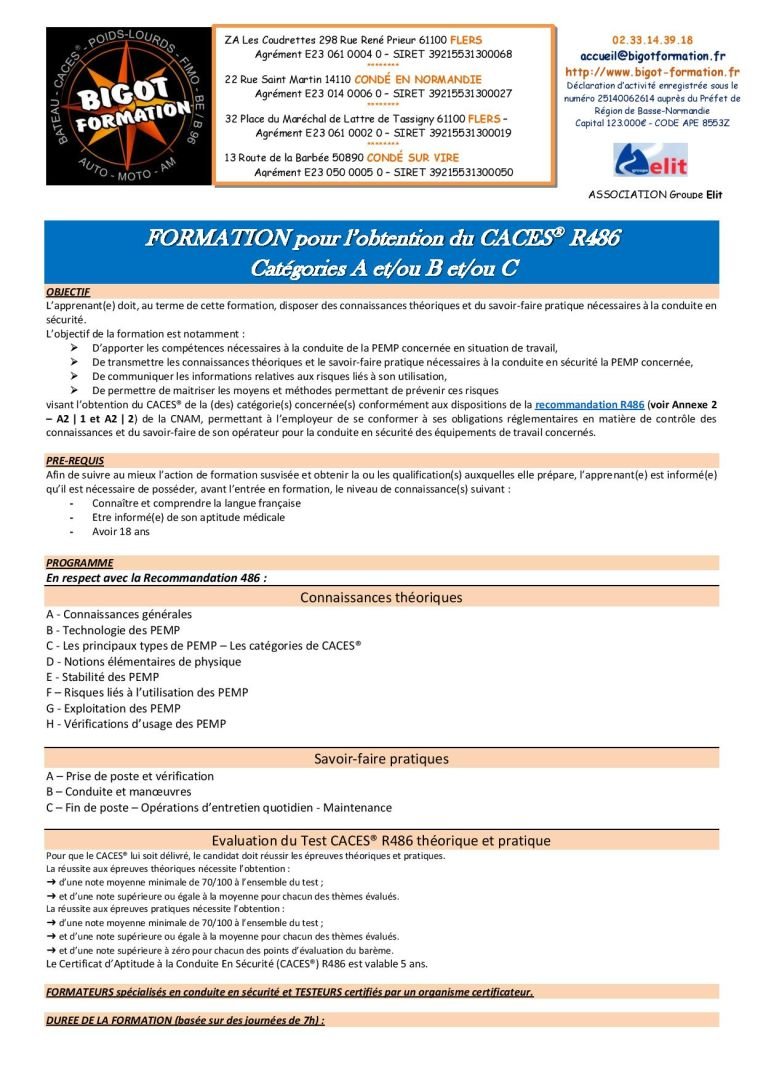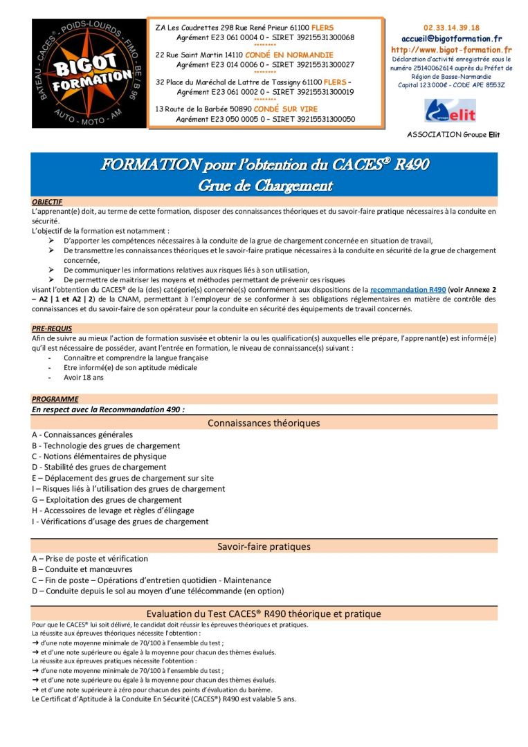 D'après le souhait du client, les formations et tests CACES® peuvent être réalisées soit au Centre de Déroulement de Tests BIGOT FORMATION soit dans l'entreprise d'accueil en fonction du cahier des charges spécifique à la validation du CACES® - une convention de mise à disposition des locaux et/ou du matériel pour tests hors agence est transmise avant la demande du devis.