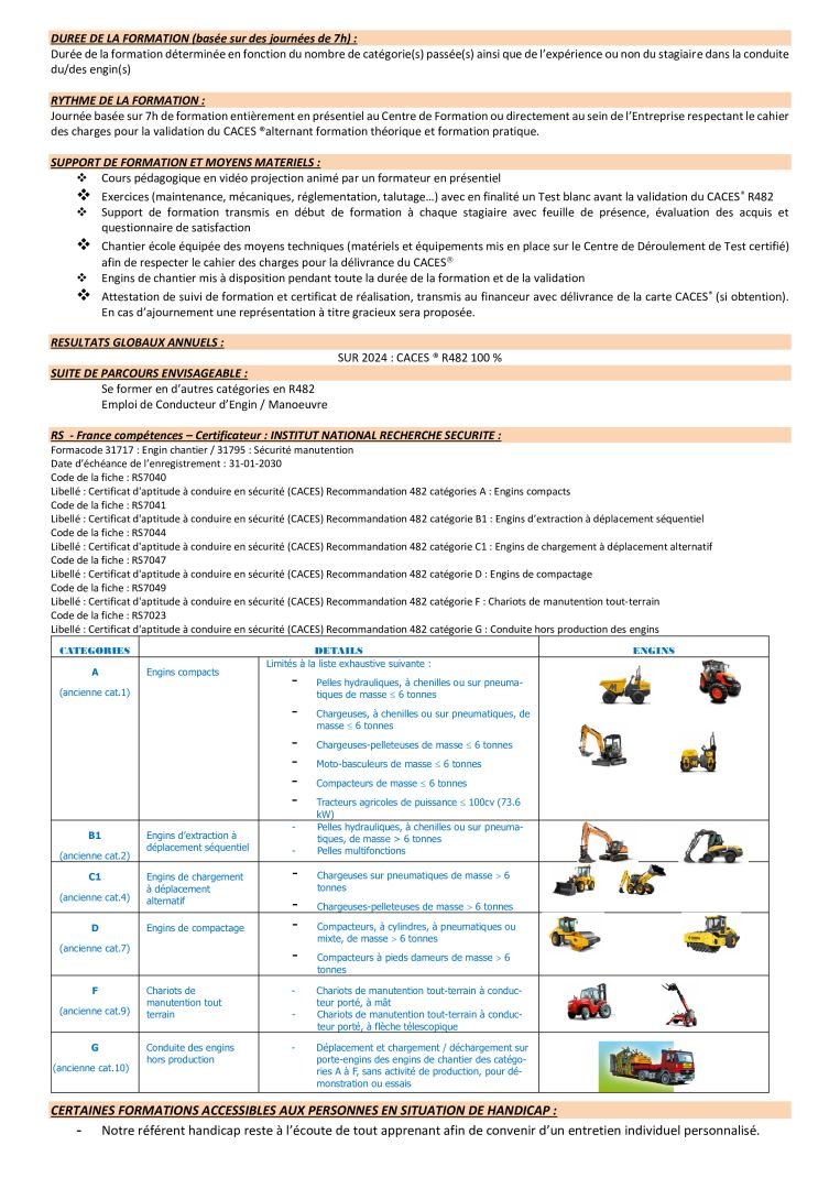 Notre expérience nous a engagé à mener une démarche de certification "CACES®" auprès de S.G.S. pour pouvoir continuer à dispenser une formation de qualité et être reconnu par la CARSAT et la CNAMTS, sous l'égide du Groupement ELIT Association, basé à NEVERS auquel nous adhérons depuis 2000.