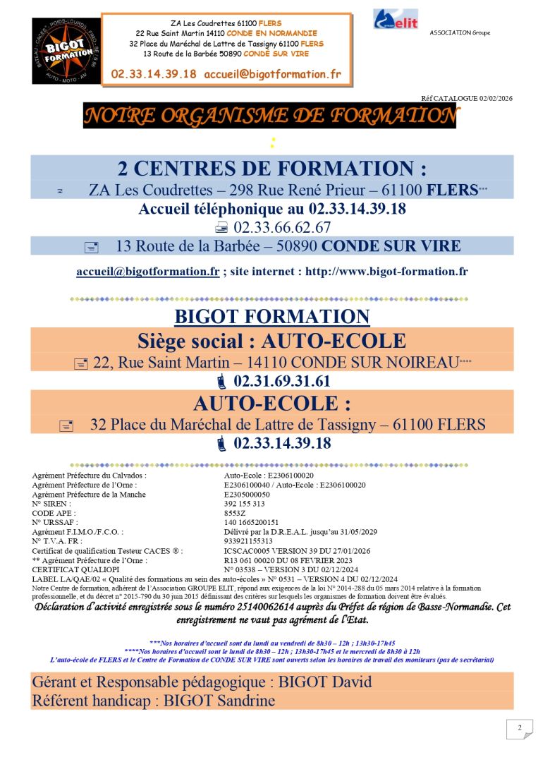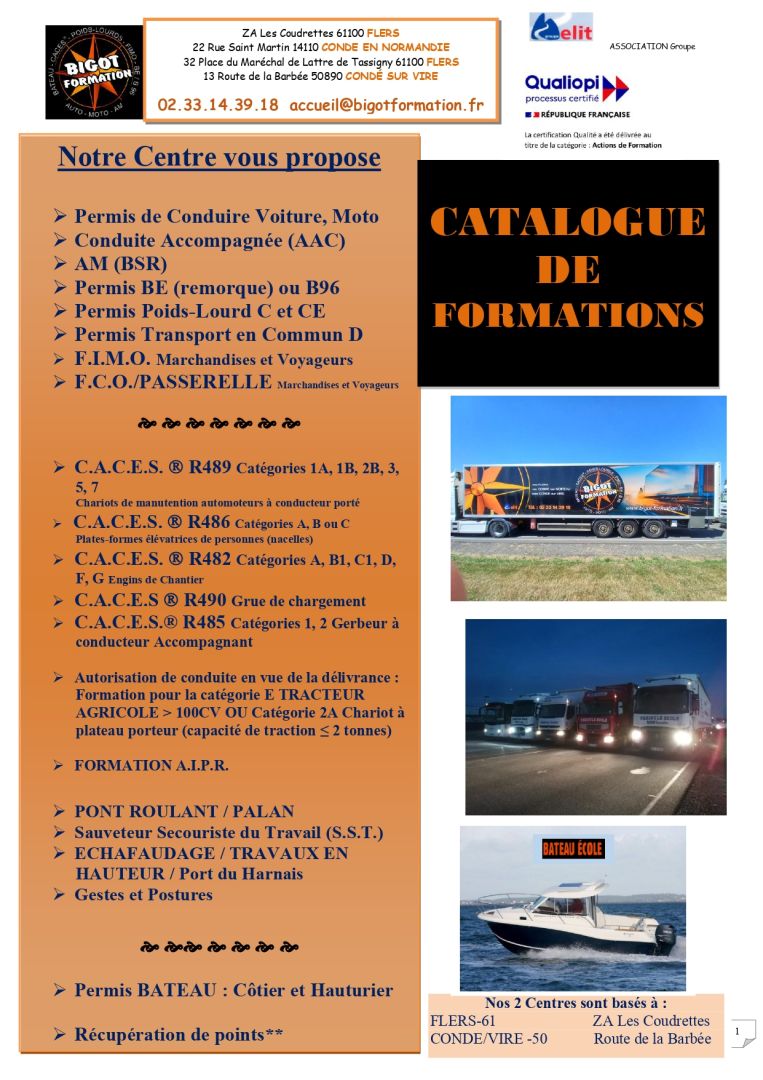 Accueil / Notre calendrier des sessions sur FLERS et CONDE SUR VIRE et notre catalogue